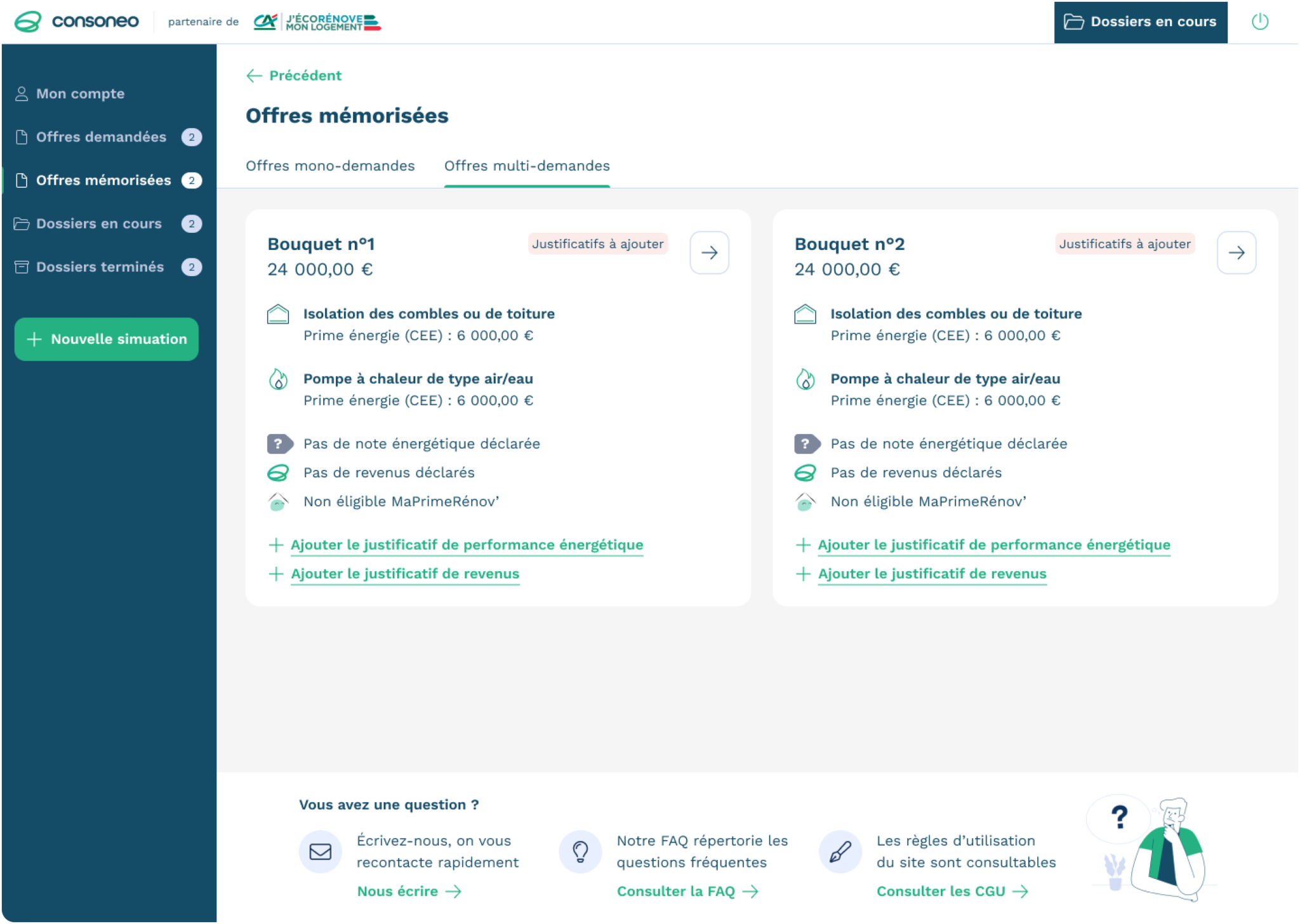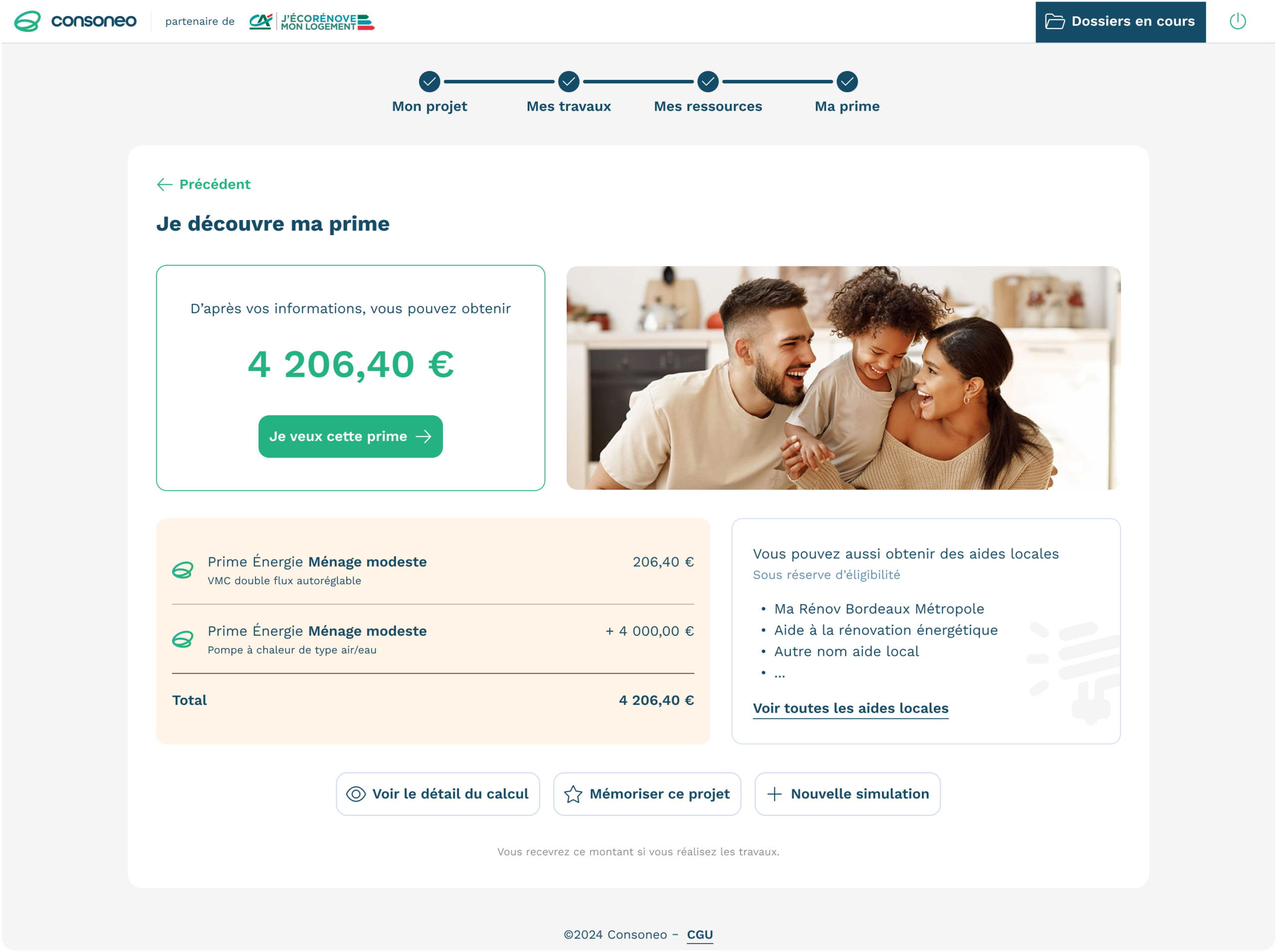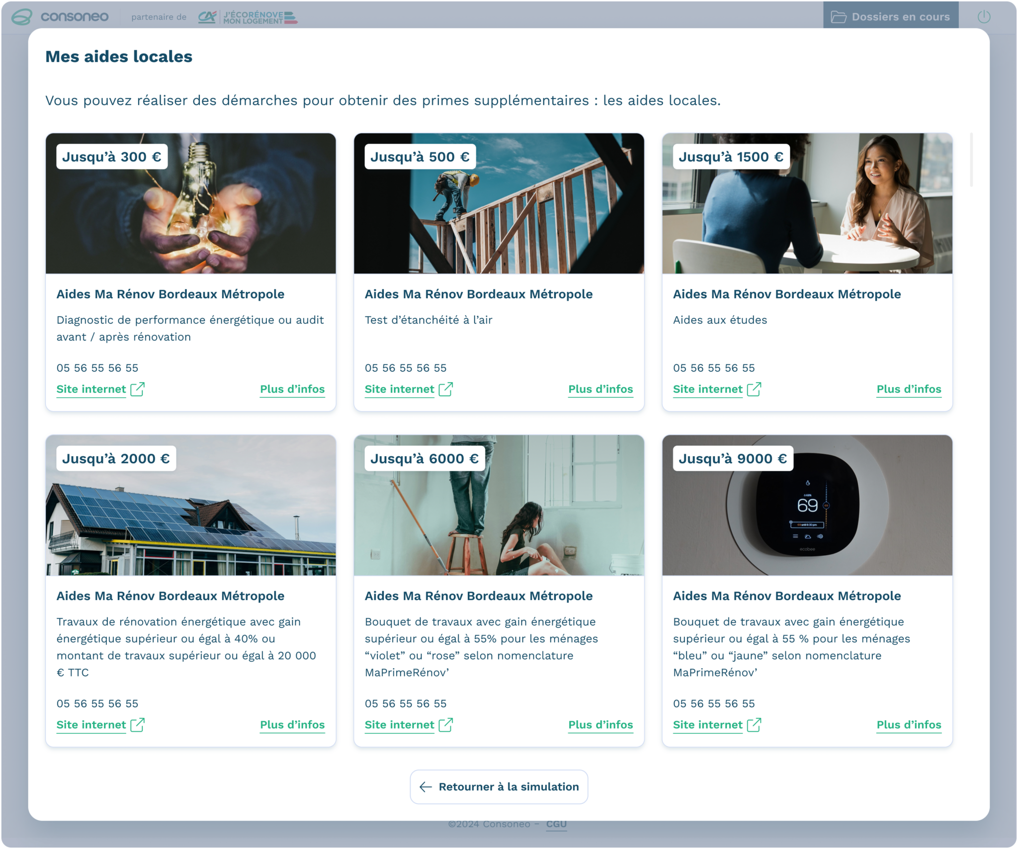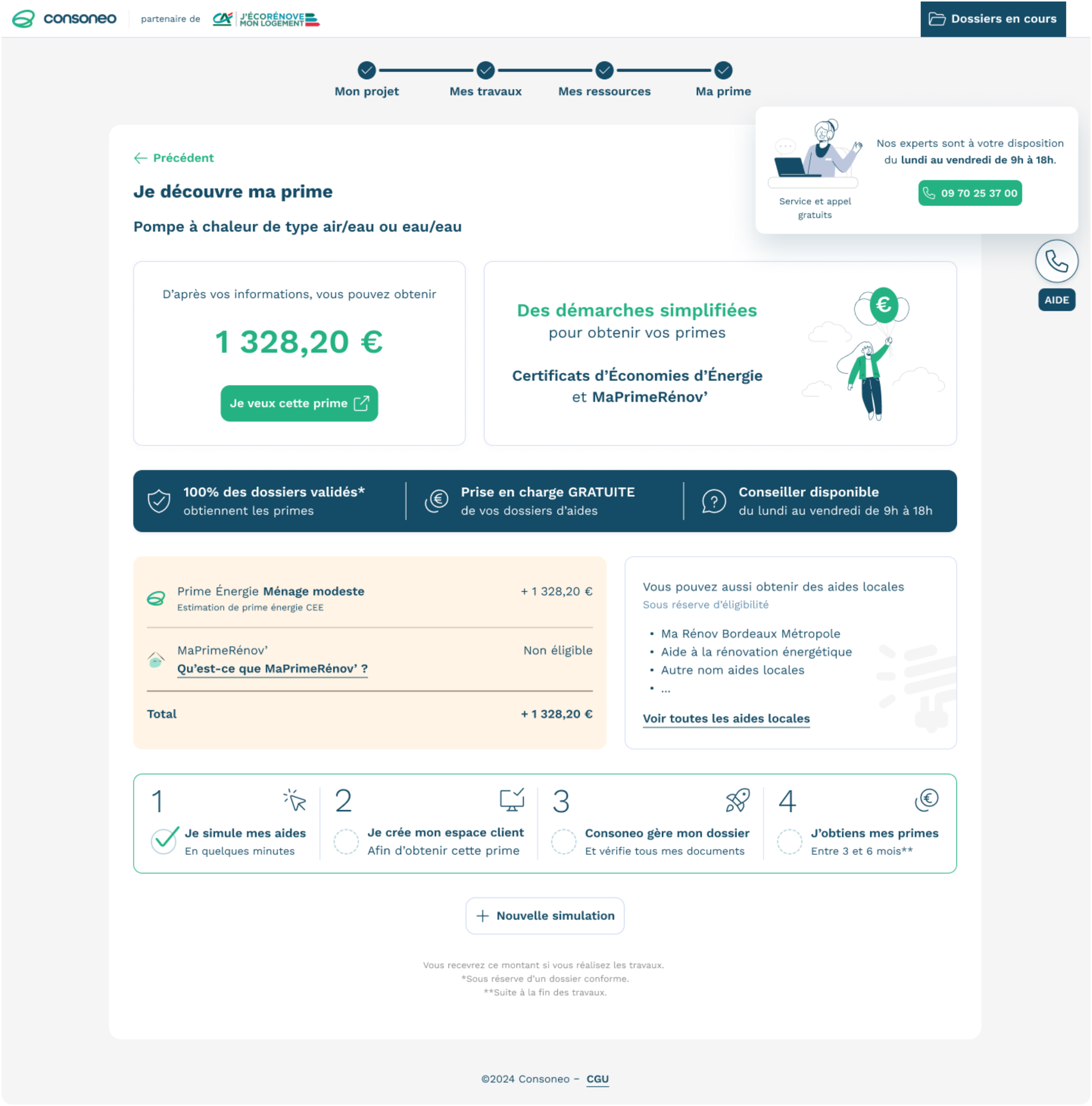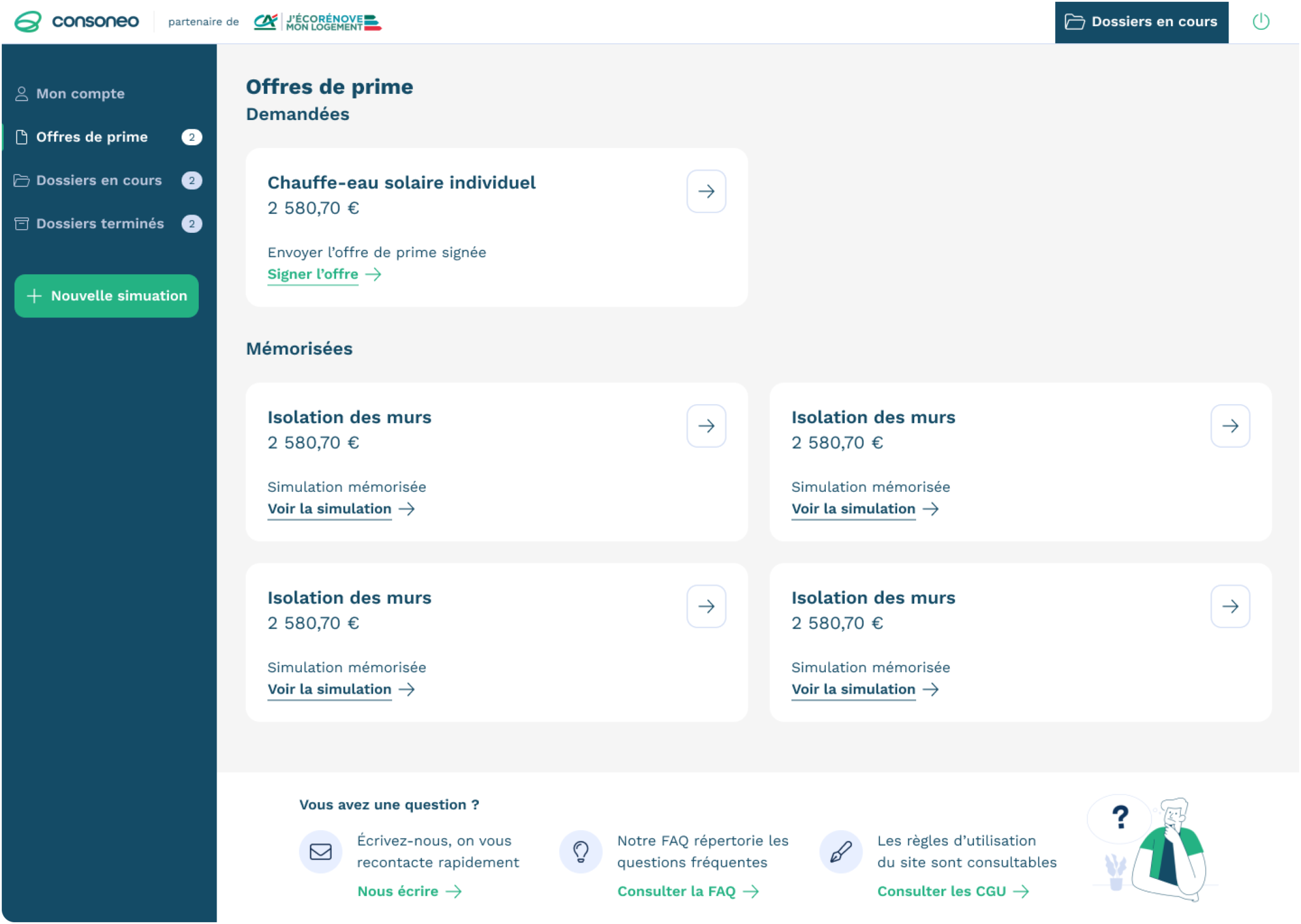 Offrir aux clients la possibilité d’obtenir, dans un premier temps, une simulation du montant des primes disponibles pour leurs travaux de rénovation énergétique.