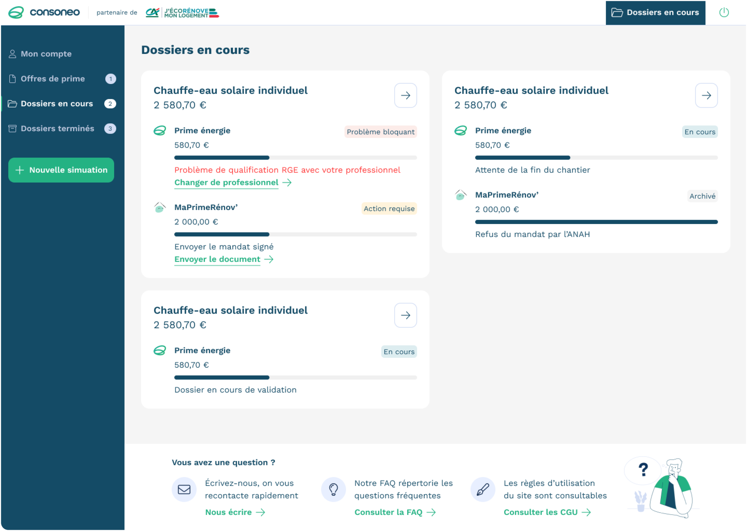 Guider l’utilisateur efficacement dans le suivi de ses demandes de prime et plus généralement, à chaque étape du montage de son dossier
